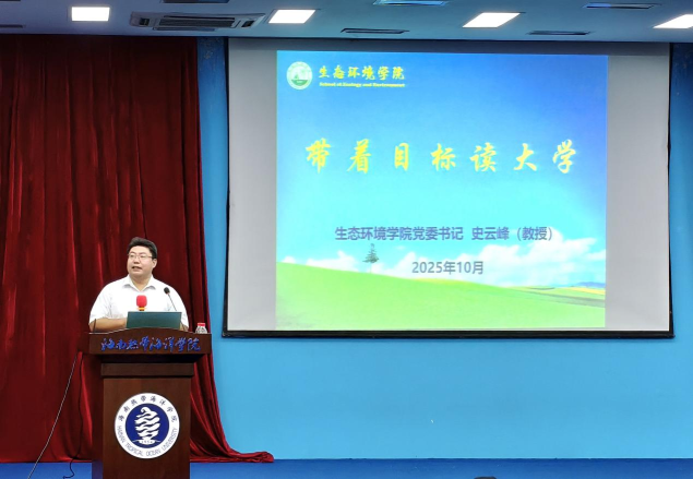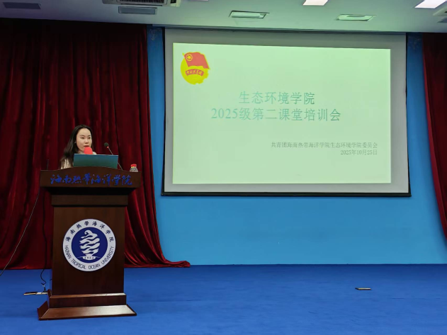 为引导2025级新生坚定理想信念、明确大学目标、规划成长路径,10月25日下午,海南热带海洋学院生态环境学院举办2025年新生入党启蒙教育,讲座分为“带着目标读大学”、“入党启蒙教育”和“二课学分讲解”三部分,分别由学院党委书记史云峰、学院党委副书记陈友、团委副书记吴益玲主讲,学工办副主任周冬珍、辅导员张咪、全体2025级新生参会。