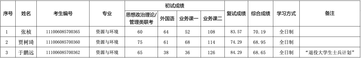 海南热带海洋学院资源与环境专业2026年硕士研究生一志愿考生复试成绩公示