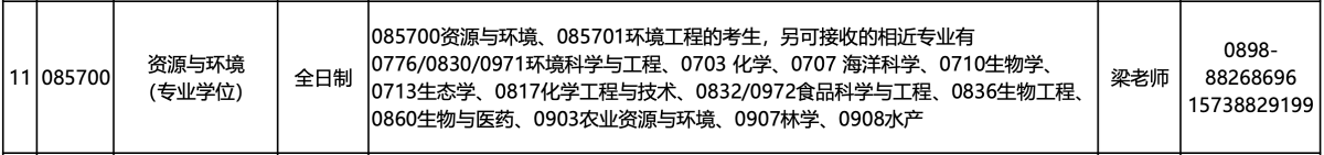 4. 海南热带海洋学院生态环境学院2026年资源与环境硕士研究生招生拟接收调剂专业一览表